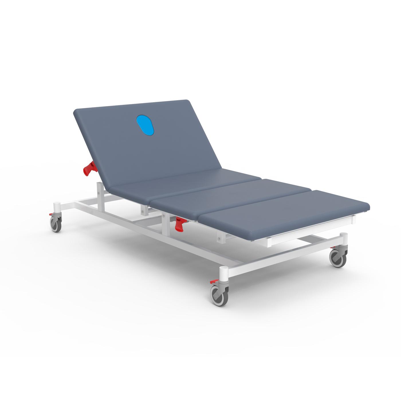 La camilla Active 100 versión 1.2 está equipada con cuatro secciones y está especialmente diseñada para tratamientos de fisioterapia, exploraciones y reconocimientos. Gracias a la gran superficie de este dispositivo, es posible acompañar al paciente en numerosos ejercicios encaminados a la rehabilitación.