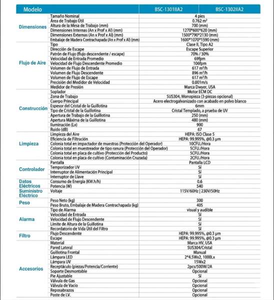 Cabina de seguridad biológica-Certificado NSF/ANSI 49 BSC-1301IIA2/1302IIA2
