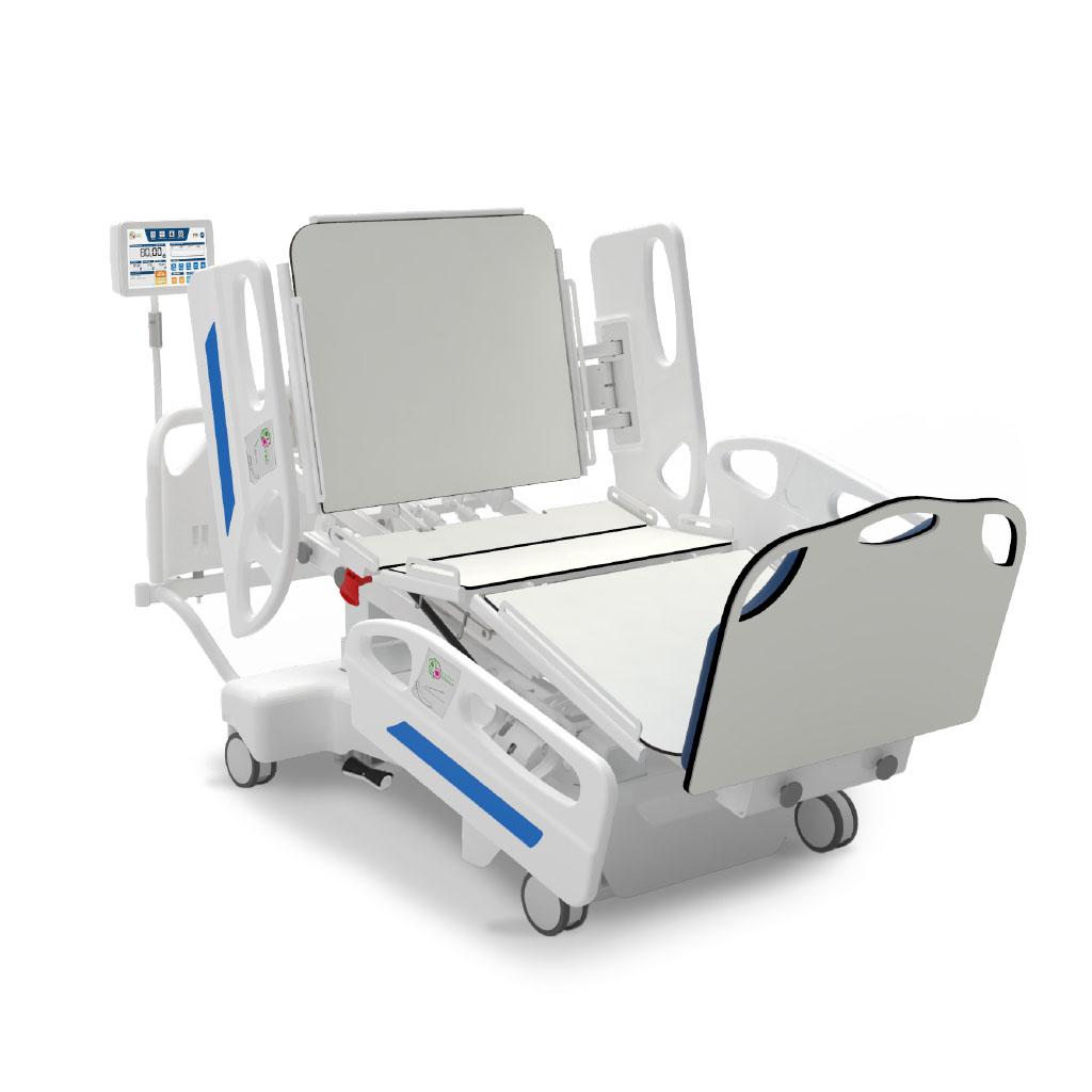 - Somier ergonómico de 4 cuerpos con triple articulación fabricado en HPL de fácil higienización.