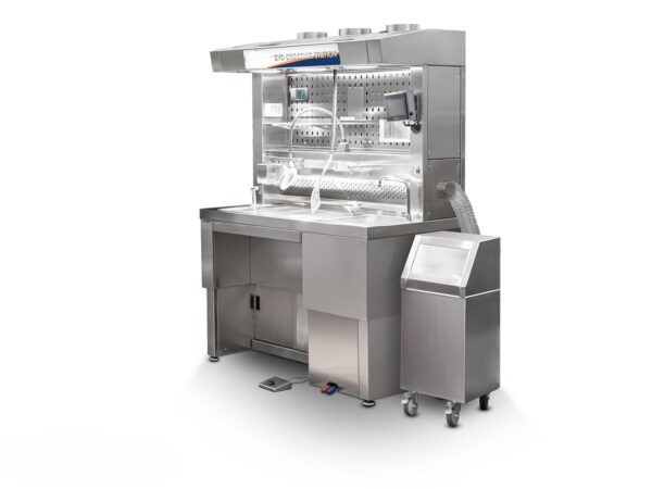 Fabricadas en acero inoxidable AISI 304, estas estaciones están disponibles en cuatro anchos diferentes: 90, 150, 200 y 240 cm, lo que las hace ideales tanto para laboratorios compactos como para áreas de alto volumen. Cada modelo incluye iluminación LED de alta intensidad, lavabo de acero inoxidable y sistema de ventilación compatible con extracción o recirculación, según las necesidades del entorno.