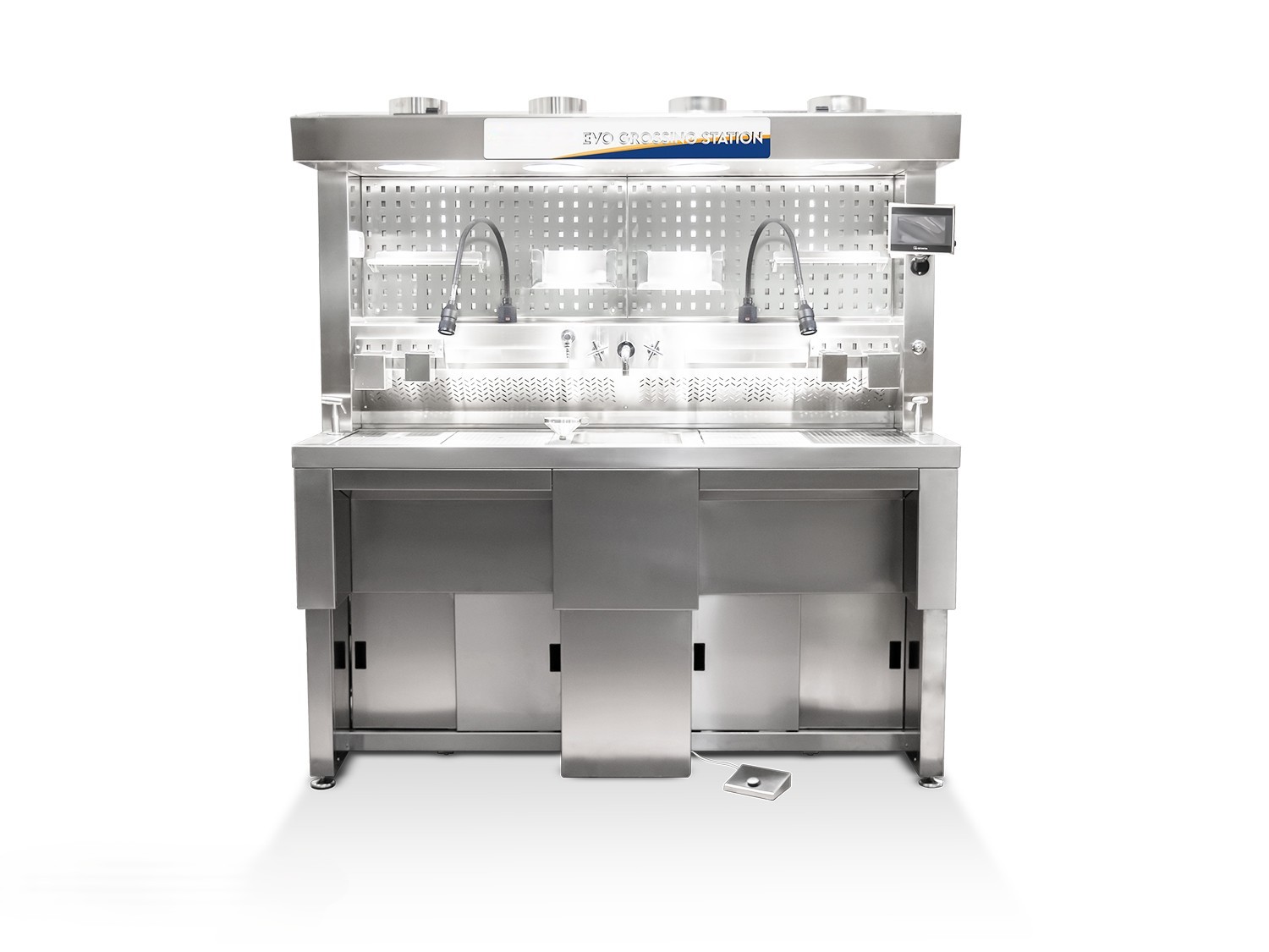Las estaciones de tallado elevables EVO-EB están diseñadas para ofrecer máxima ergonomía y funcionalidad durante los procedimientos de tallado en laboratorios de anatomía patológica. Esta serie incluye tres modelos con diferentes anchos (150, 200 y 240 cm), todos equipados con ventilación posterior tipo backdraft, regulación eléctrica de altura y estructura totalmente fabricada en acero inoxidable AISI 304.