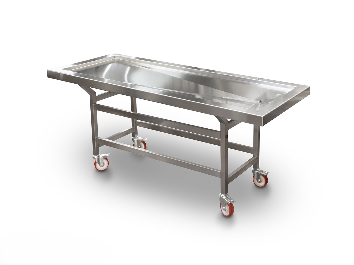 El carro de autopsia ATPCART910-I está diseñado para facilitar el transporte y drenaje de fluidos durante procedimientos post-mortem. Su superficie modificada e inclinada permite una evacuación eficiente, y su diseño robusto asegura movilidad controlada y uso seguro en entornos clínicos y forenses.