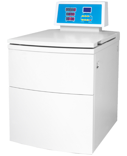 - Caja externa de metal. La centrífuga se encuentra sobre ruedas móviles.