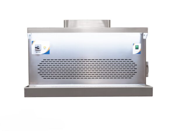 Esta estación incorpora un sistema de ventilación interna diseñado para conectarse directamente a la red de extracción del edificio. La evacuación de vapores se realiza a través de una rejilla trasera y conducto superior, lo que permite mantener un entorno seguro y libre de olores.