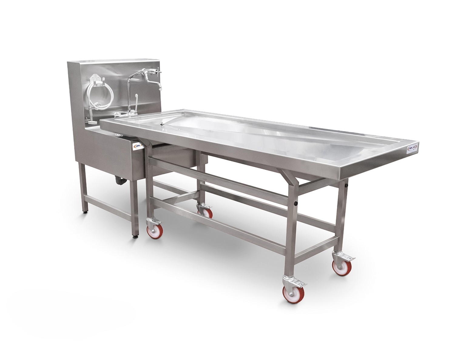 El fregadero de embalsamamiento EMBSINK76 está diseñado para ofrecer todas las funcionalidades esenciales en espacios reducidos. Su estructura compacta y sin uniones facilita la higiene, mientras que sus componentes técnicos aseguran una manipulación eficaz y segura durante los procedimientos post-mortem.
