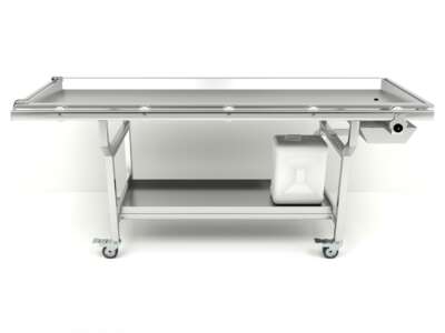 La mesa de disección DITABLE-R está diseñada para una manipulación segura y eficaz de cuerpos en entornos anatómicos o forenses. Su bandeja superior extraíble y el sistema integrado de drenaje permiten una operación higiénica y funcional.