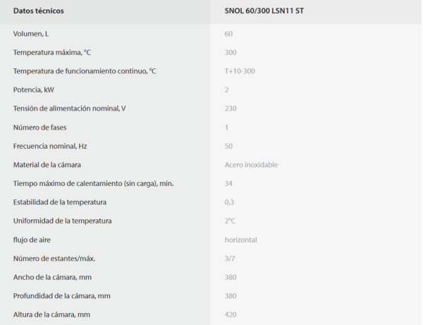 Horno de baja temperatura SNOL 60/300 LSN11 ST
